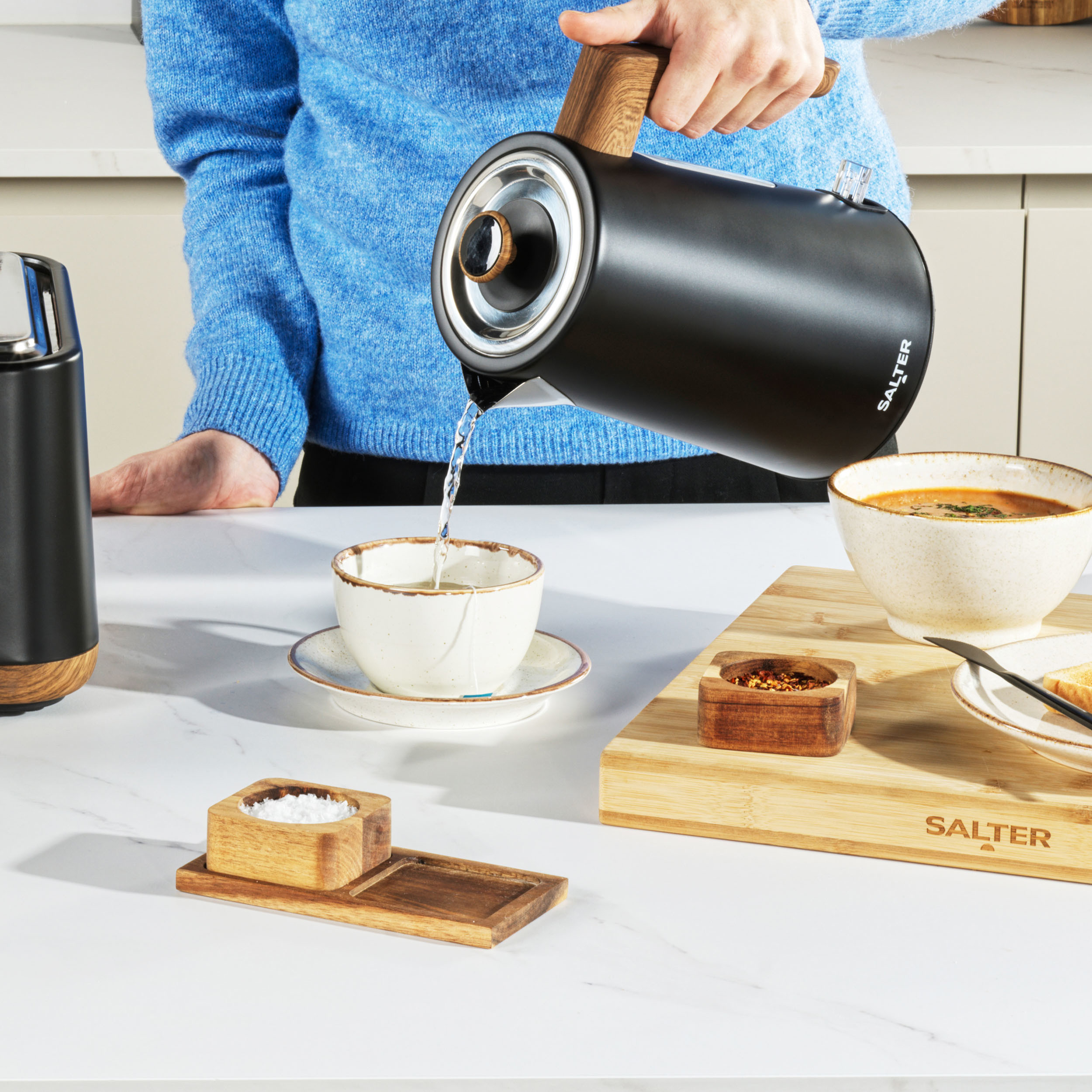 Salter COMBO-9135 Toronto Kettle and 4-Slice Toaster Set – 1.7 L Fast Boil Kettle With Limescale Filter, Wide Toasting Slots, High-Lift Eject, Wood Effect, 6 Browning Levels, 3000/1630 W, Matt Black